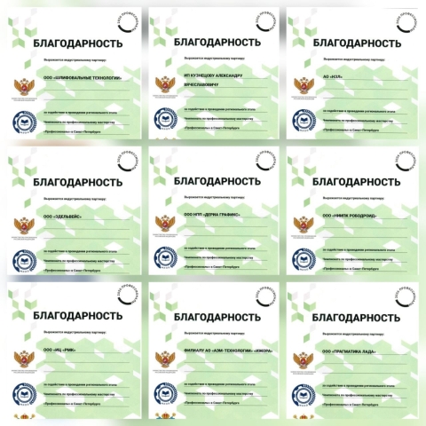 Санкт-Петербургский автомеханический колледж благодарит индустриальных партнёров за содействие в проведении регионального этапа Чемпионата по профессиональному мастерству «Профессионалы» в Санкт-Петербурге.