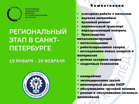 С 19 января по 20 февраля 2026 года в Санкт-Петербурге проходит Региональный этап Чемпионата по профессиональному мастерству «Профессионалы».